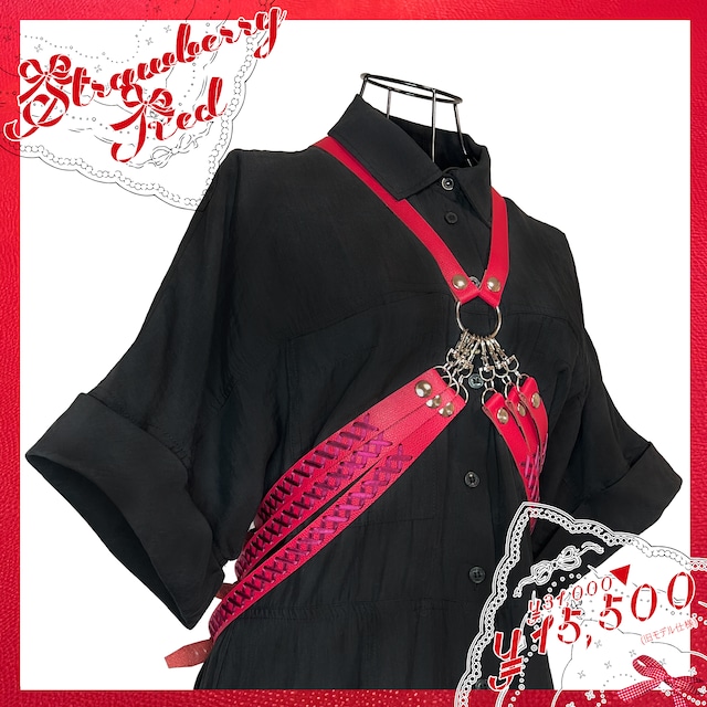 型押し革の瑞々しい凹凸感が 艶やかな果実を連想させる様な ストロベリーレッドカラー。 初お披露目の革色、 旧モデル仕様にて 少数限定展開でございます。 可憐且つ鮮やかな赤のコントラストを 是非御楽しみ頂けますと幸いです。 ┈┈┈┈┈┈┈┈┈┈ ●肋骨ハーネスベルト Winterberry革×ボルドーリボン ●旧モデル仕様について ※当作品はリニューアル前仕様にて、ヘリ(ふち)部分は削り無、床面保護加工有の仕上がりとなりますので、お含みおき頂けますよう、よろしくお願い申し上げます。 ┈┈┈┈┈┈┈┈┈┈ ※写真の服は付属致しません。