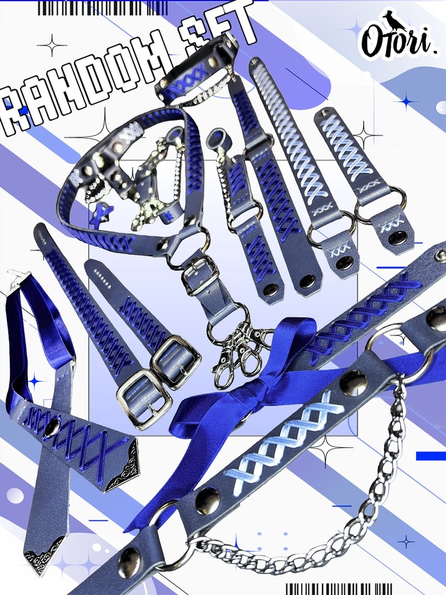 ┈┈┈┈┈┈┈┈┈┈ 御好評に与り、Otori.より ランダムガチャフェスを開催致します。 今季フェスは、 格子や網の様なグリッド線を想わせる 型押しブラックカラーにて、 小物を中心としたランダムセット2種を 御用意致しました。 ガチャガチャを回すような気持ちで 是非お楽しみ頂けますと幸いです。 ┈┈┈┈┈┈┈┈┈┈ ●ランダムセット ・【クロスタイ/バニーカフス/チョーカー/ガーター/ブレス/リング/ヘッドドレス】の中から 合計¥16,500以上となるようランダムな組み合わせにてお届け 例:宵病みクロスタイ¥5,000+死絡みガーターリング¥5,000+御伽噺ブレス¥4,000+御伽噺リング¥2,500=総計¥16,500 ・デザイン/カラー詳細指定不可、完全ランダム 【備考欄へ、希望アイテムカテゴリ1つ(例:チョーカー)をご記載頂けましたら、 なるべく1点は御希望のアイテムに沿った作品を同封させて頂きます。】 ●Grided Black革×ブラックリボン(編み上げリボン無) ●全てデフォルトサイズ ▶ サイズオーダー可能 ※予め御迎え前に御希望サイズを添えてお問い合わせ頂けますと幸いです。 ●旧モデル仕様について ※当作品はリニューアル前仕様にて、ヘリ(ふち)部分は削り無、保護加工有の仕上がりとなりますので、お含みおき頂けますよう、よろしくお願い申し上げます。