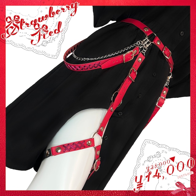 型押し革の瑞々しい凹凸感が 艶やかな果実を連想させる様な ストロベリーレッドカラー。 初お披露目の革色、 旧モデル仕様にて 少数限定展開でございます。 可憐且つ鮮やかな赤のコントラストを 是非御楽しみ頂けますと幸いです。 ┈┈┈┈┈┈┈┈┈┈ ●妄毒ハーネス(下) Winterberry革×ボルドーリボン ┈┈┈┈┈┈┈┈┈┈ ⚫︎サイズ 腰ベルト:68-86cm ガーターリング:36-55cm ▶サイズオーダー可能 ※予めお迎え前にお問い合わせ頂けますと幸いです。 サイズ変更について +1cm毎/¥100の追加価格が発生致します。 (サイズダウンは無料) ●旧モデル仕様について ※当作品はリニューアル前仕様にて、ヘリ(ふち)部分は削り無、床面保護加工有の仕上がりとなりますので、お含みおき頂けますよう、よろしくお願い申し上げます。 ┈┈┈┈┈┈┈┈┈┈ ※写真の服は付属致しません。